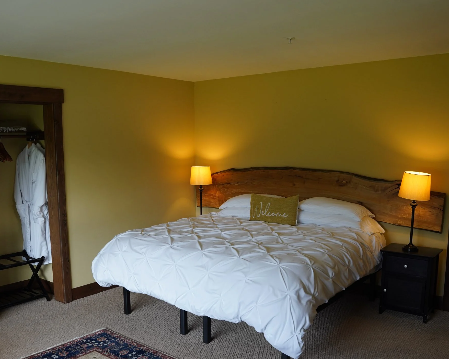 Our Bed & Breakfast is located on the top floor above the winery and tasting room. Each room has a view of the Puget Sound or the rolling pasture and vineyards. King size beds, private bathrooms, comfy robes, Wi-Fi included with every room. No TV, no alarm clock just a relaxing getaway awaits you here. We are licensed and insured for your peace of mind and comfort during your stay!